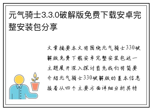 元气骑士3.3.0破解版免费下载安卓完整安装包分享
