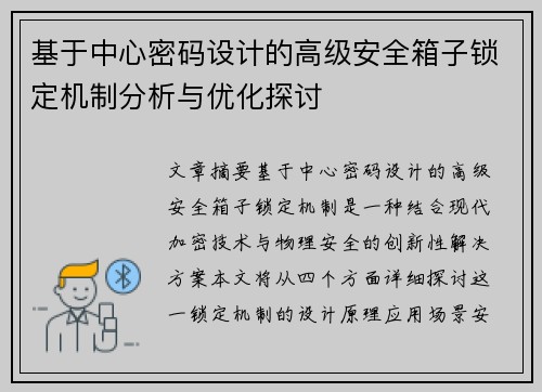 基于中心密码设计的高级安全箱子锁定机制分析与优化探讨